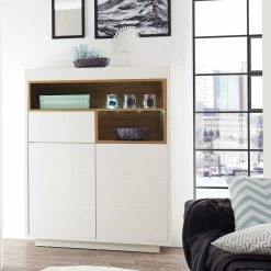 Aktion 🔥 99x135x40 Design Highboard In Weiß & Eiche – Rucian 😉