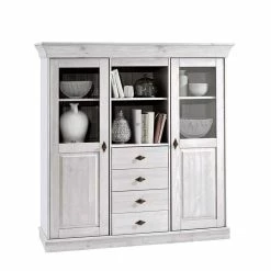 Aktion 😍 113x134x45 Landhaus Highboard Mit Glas-Einsatz – Henry 💯