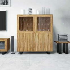 Beste Bewertungen von ⭐ Vitrine Highboard Optional Mit LED Pontros Eiche Bianco Teilmassiv 🛒