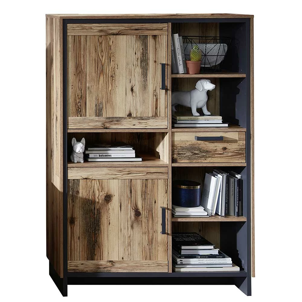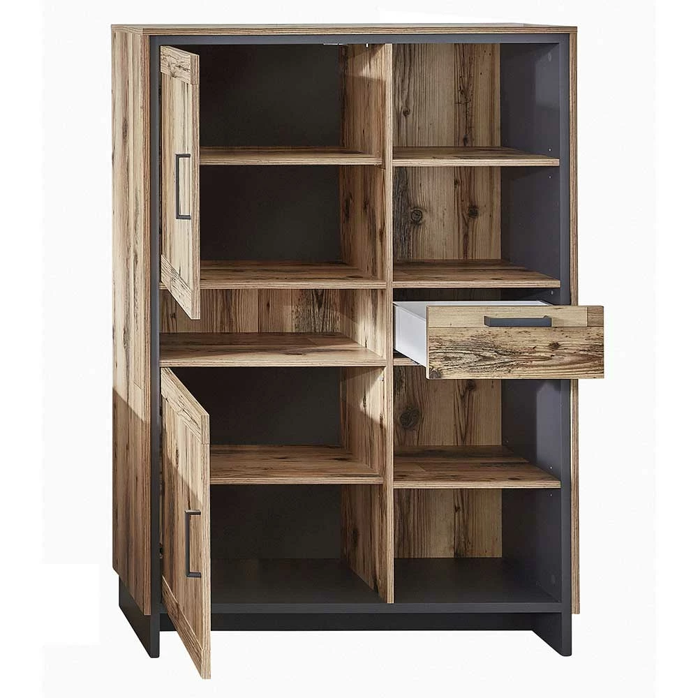 - Dekoratives Highboard in Altholz Optik und Dunkelgrau