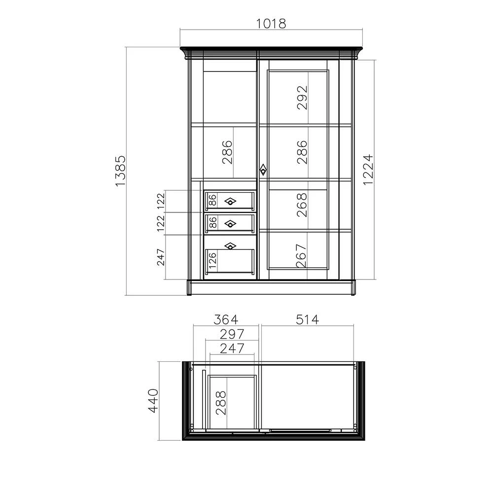 Großhandel 😀 102x139x44 Country Highboard Zweifarbig – Diatara ⭐