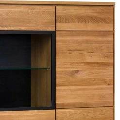 - Front aus massivem Eichenholz (durchgehende Lamelle), Korpus Holzwerkstoff