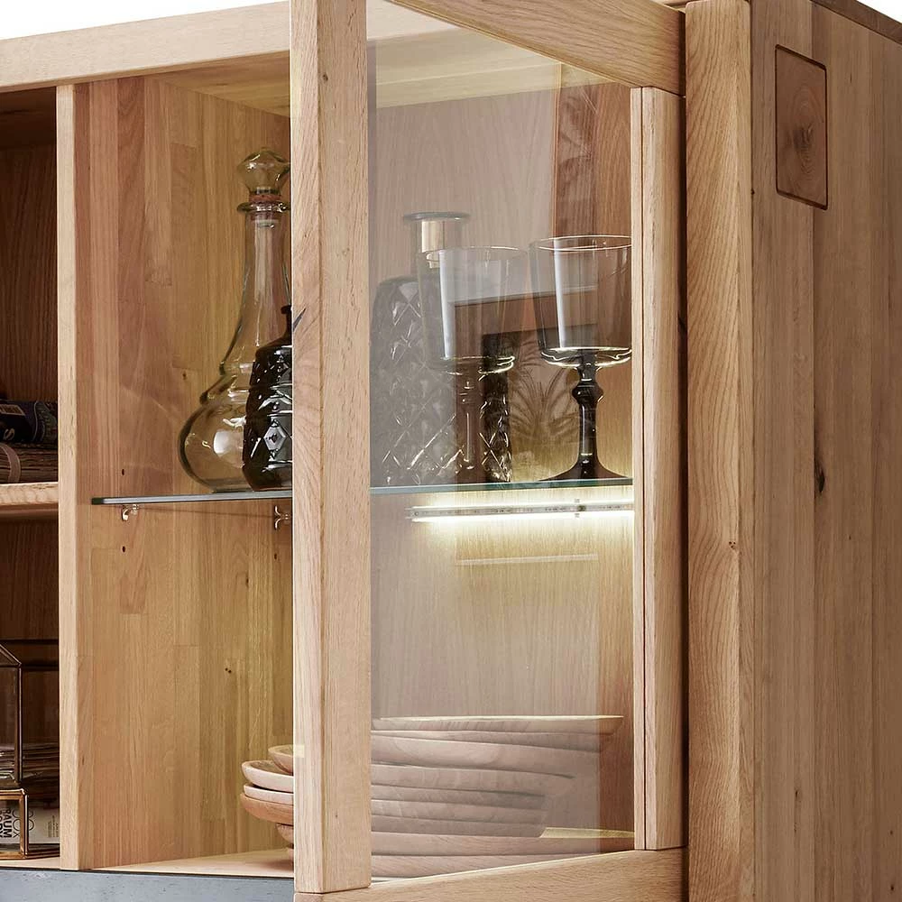 Blitzangebot 🛒 103x148x40 Modernes Holz-Highboard Mit Glaseinsatz – Embleys ⭐