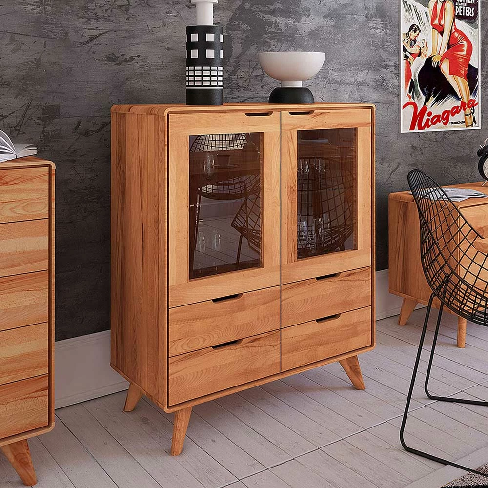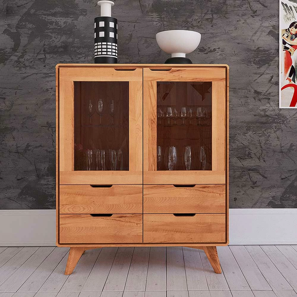 Brandneu ⭐ 110 Cm Niedrige Holzvitrine Aus Kernbuche – Junola 🤩