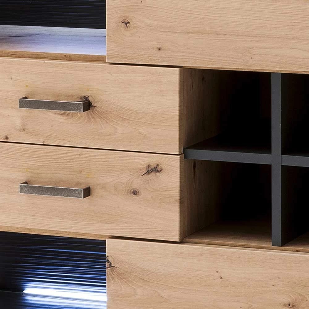 - Großartiges Highboard in Eichefarben und Anthrazit