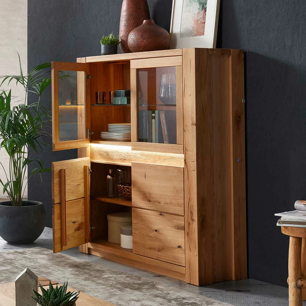Coupon 💯 123x142x40 Vitrinen Highboard Mit LED Beleuchtung – Aconlean 🎁
