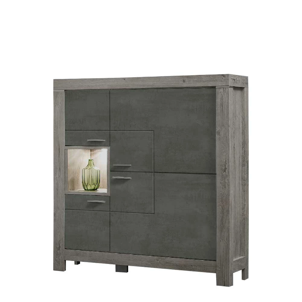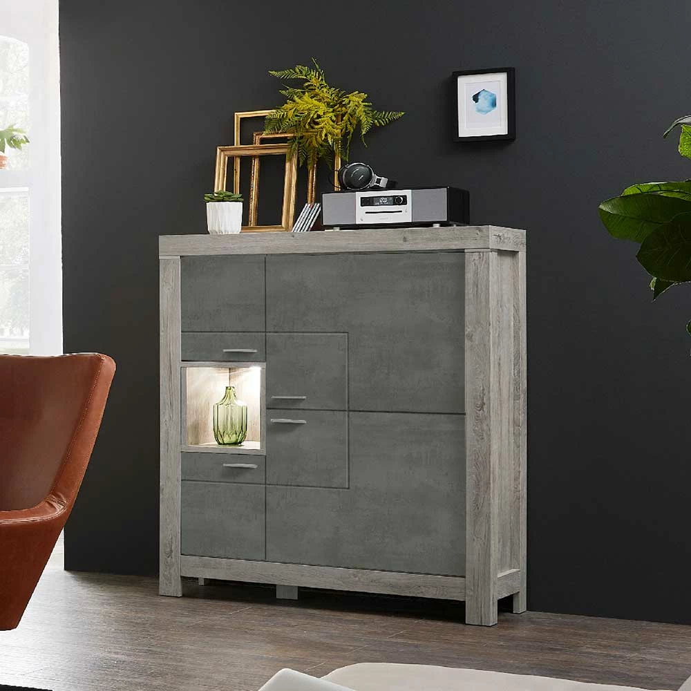 - Dekoratives Highboard in Beton Grau und Eiche dunkel
