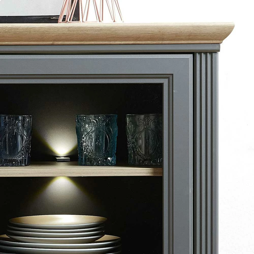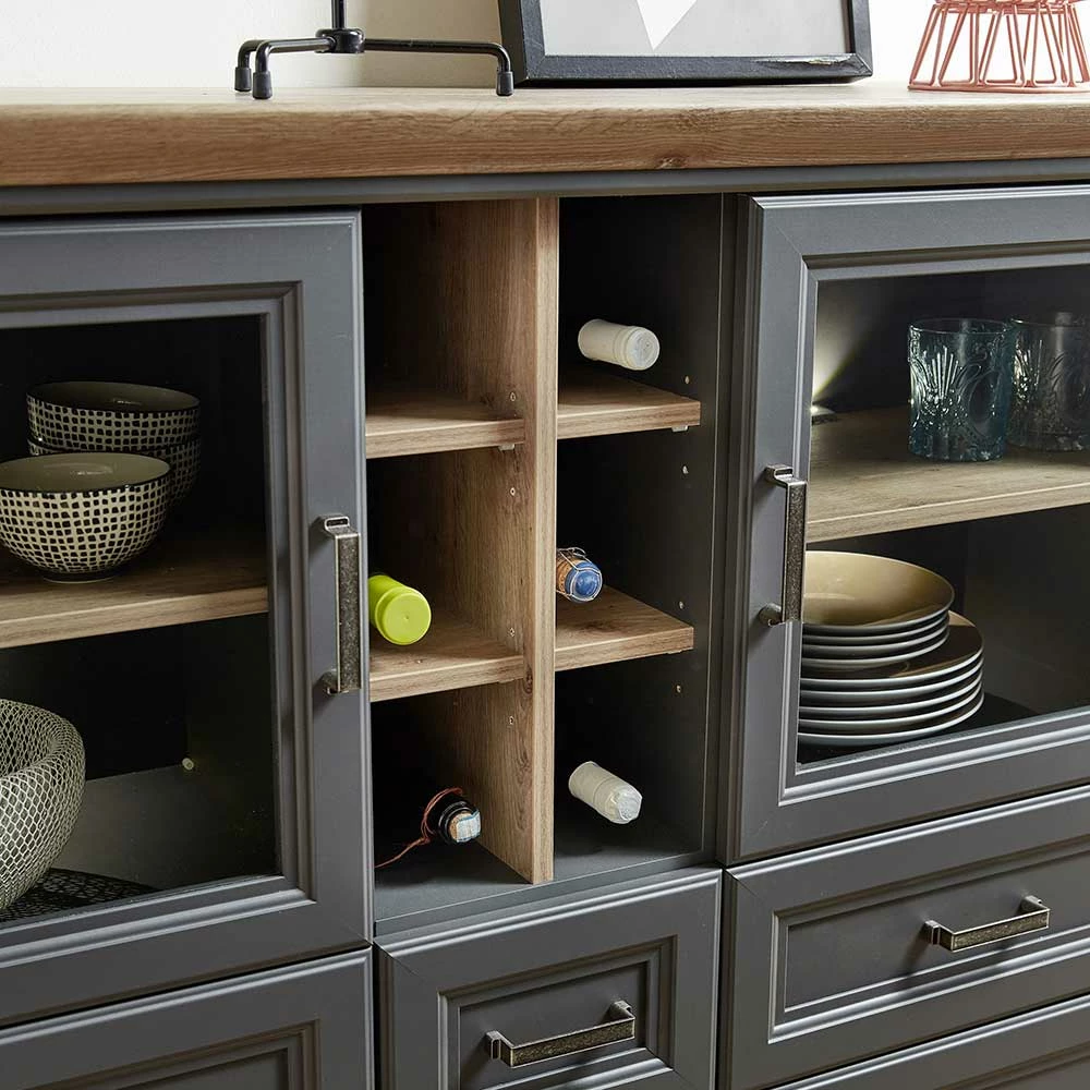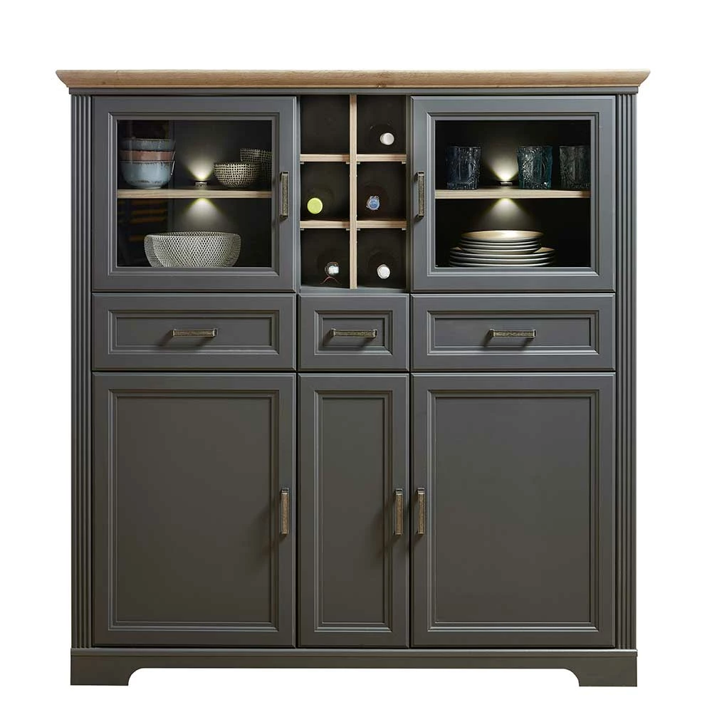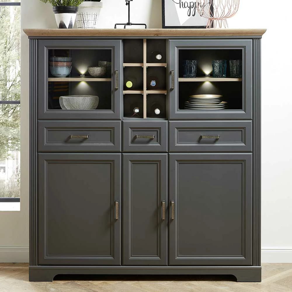 - Exklusives Highboard in dunkel Grau und Eichefarben
