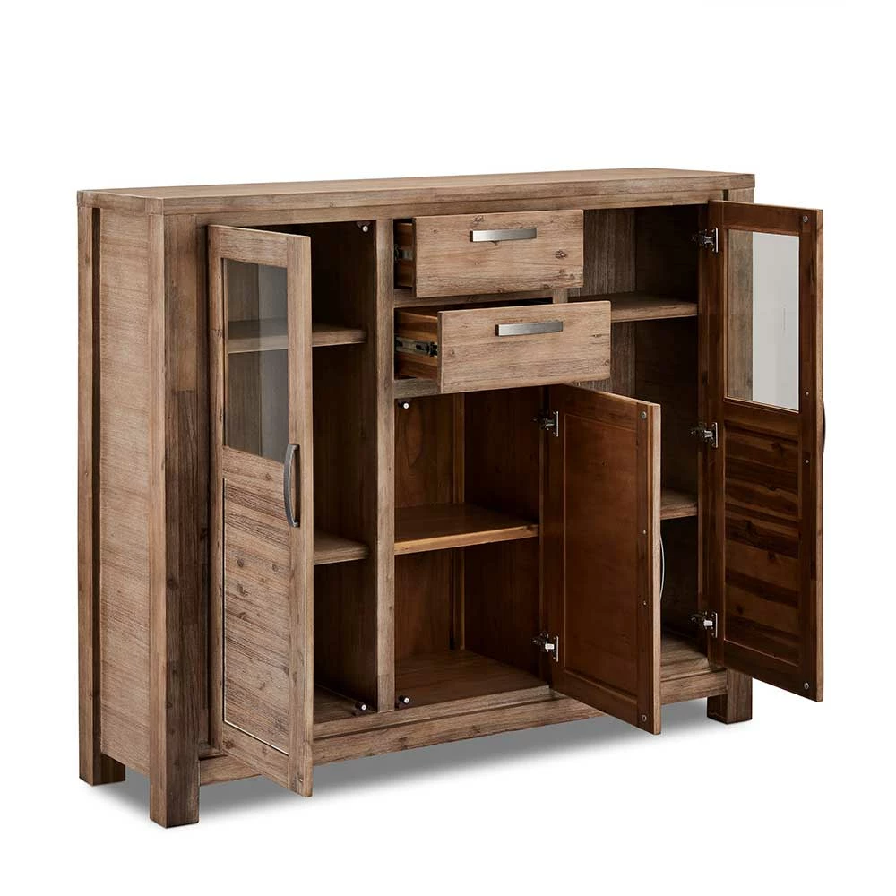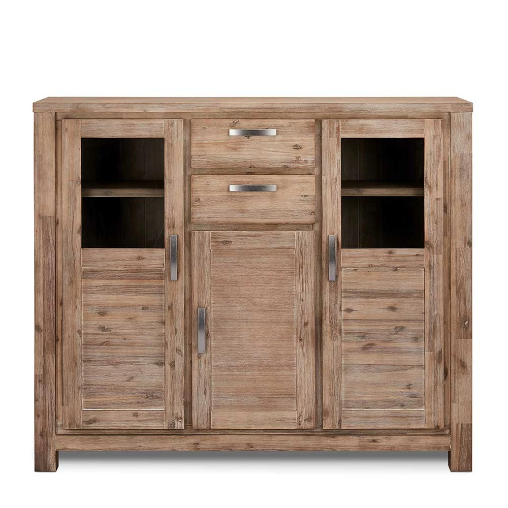 - Lackierte Oberfläche, Schubladen- und Einlegeböden, Rückwand und Füllungen aus MDF mit Akazie Echtholz furniert