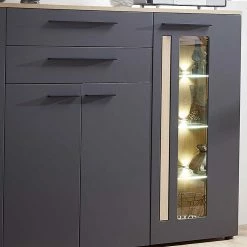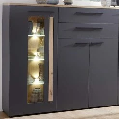 - Geniales Highboard in Dunkelgrau und Wildeichefarben