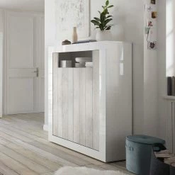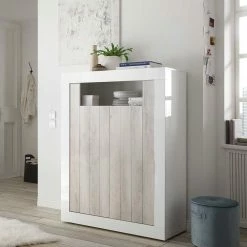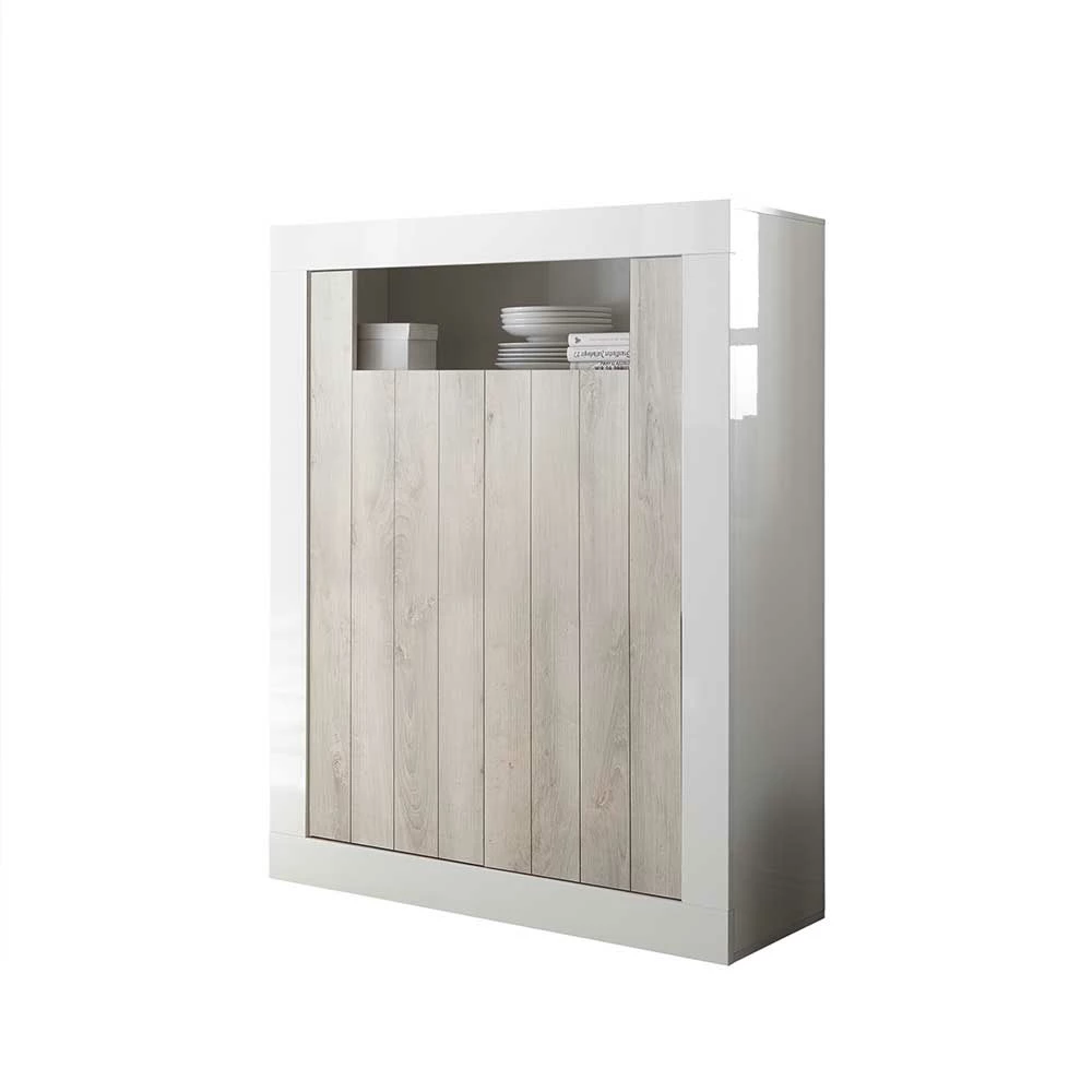 Großhandel 👍 2-türiges Highboard In Dekor Pinie Weiß – Merenda 🧨