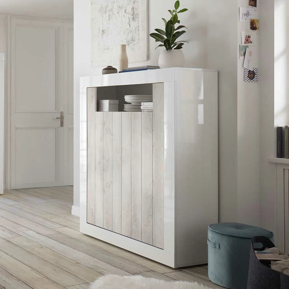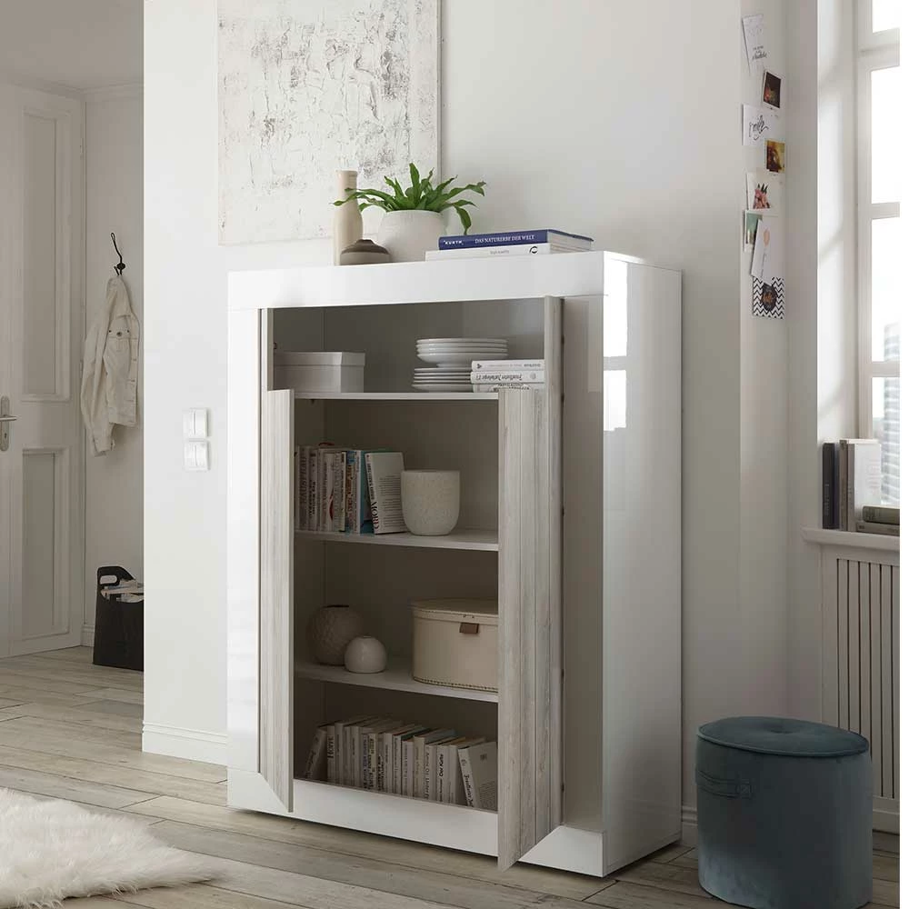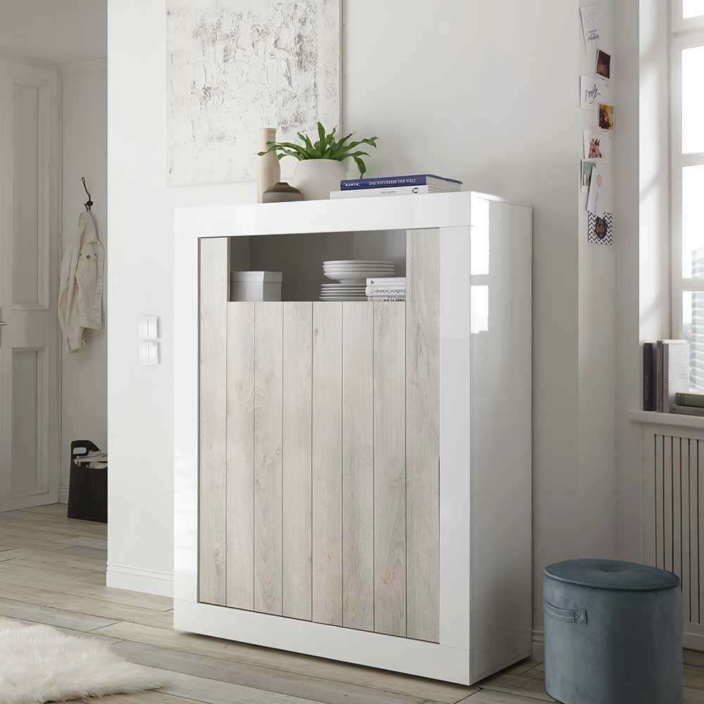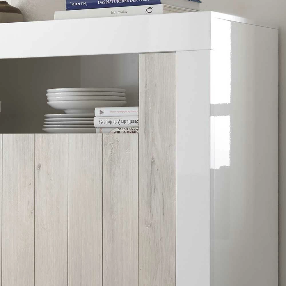 - Perfektes Highboard in Weiß hochglänzend und Pinie Weiß