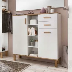 - Geräumiger Schuhschrank in Taupe und Eiche Bianco