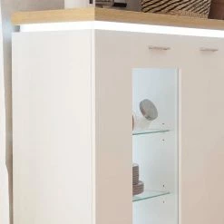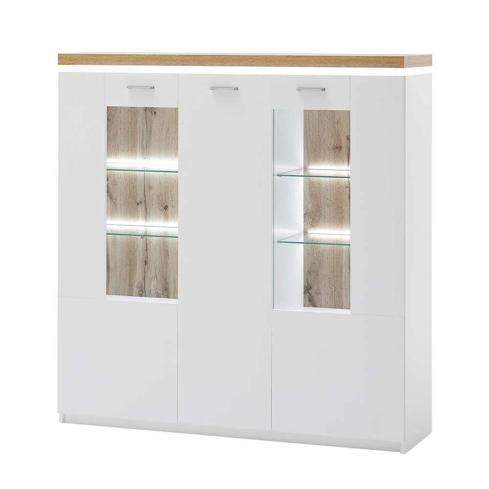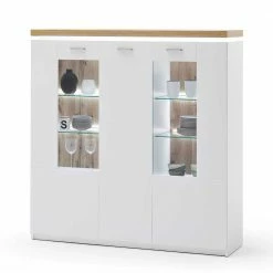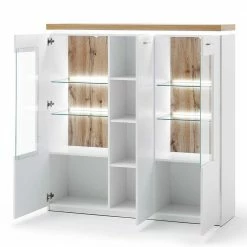 - Stilvolle Highboard-Vitrine in Weiß und Wildeichefarben