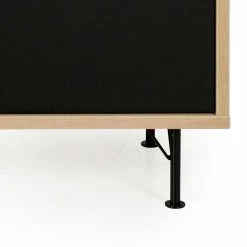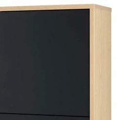 - Schwarz matt lackierte MDF-Oberfläche, Korpus mit einer pfelgeleichten Melaminbeschichtung im Holzdekor Eiche