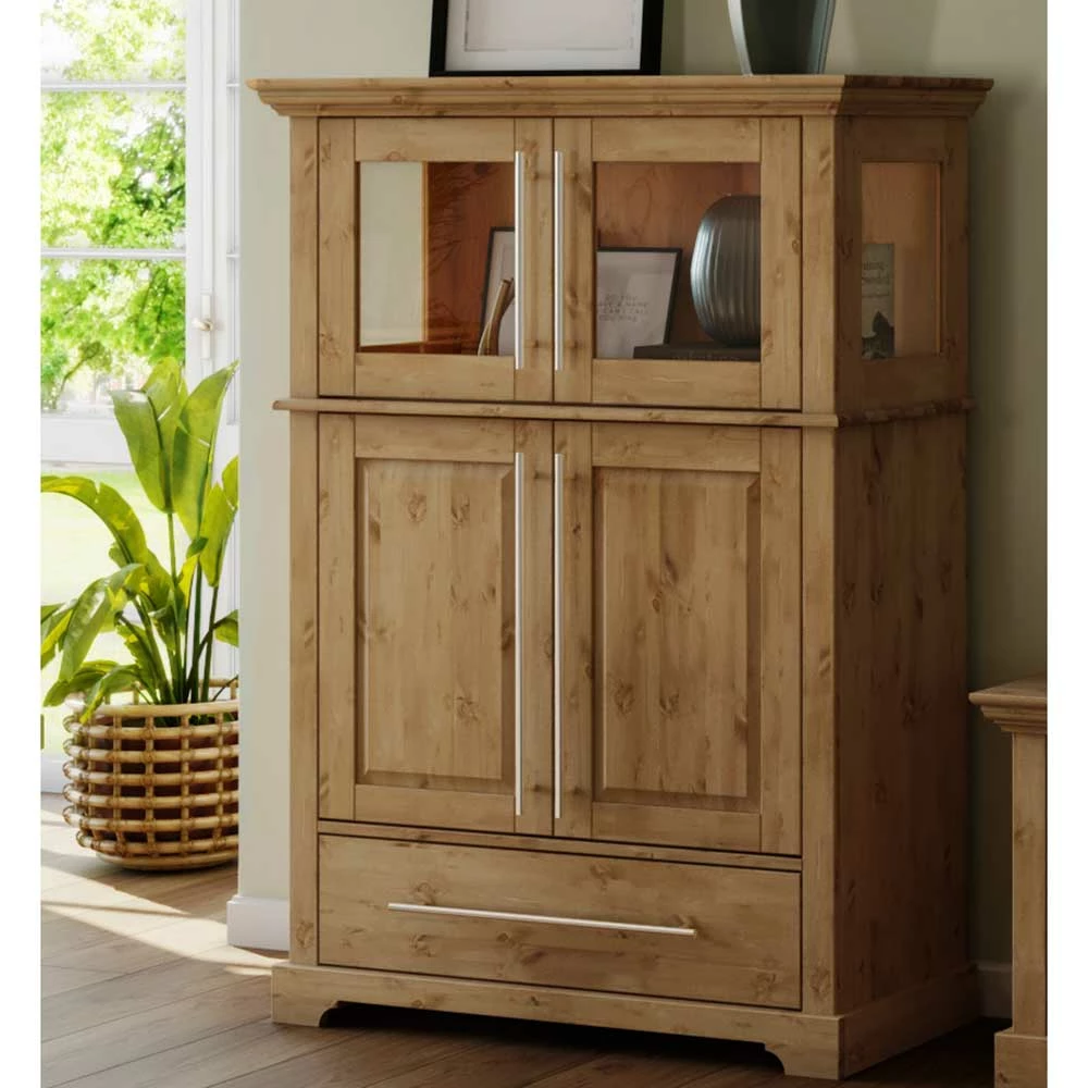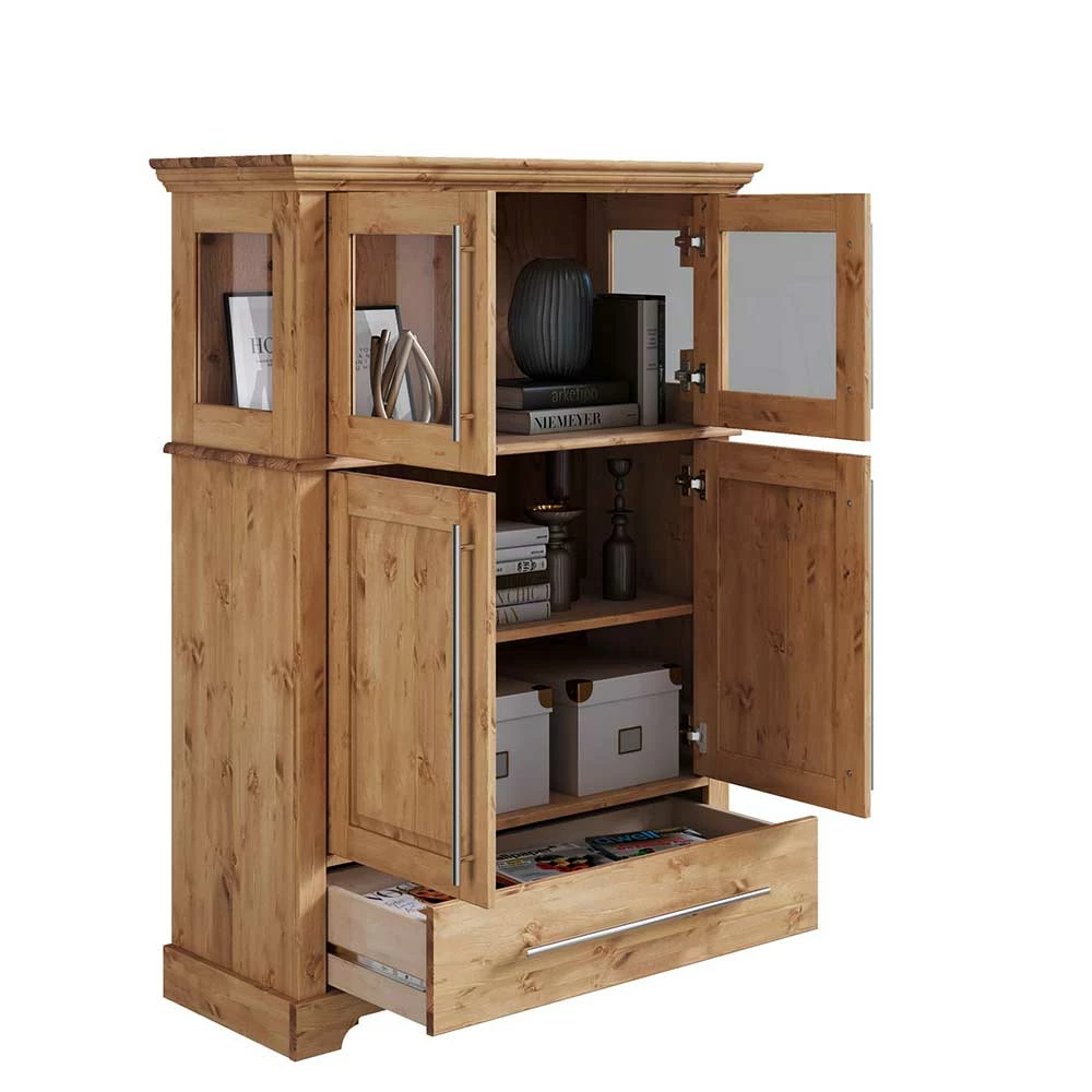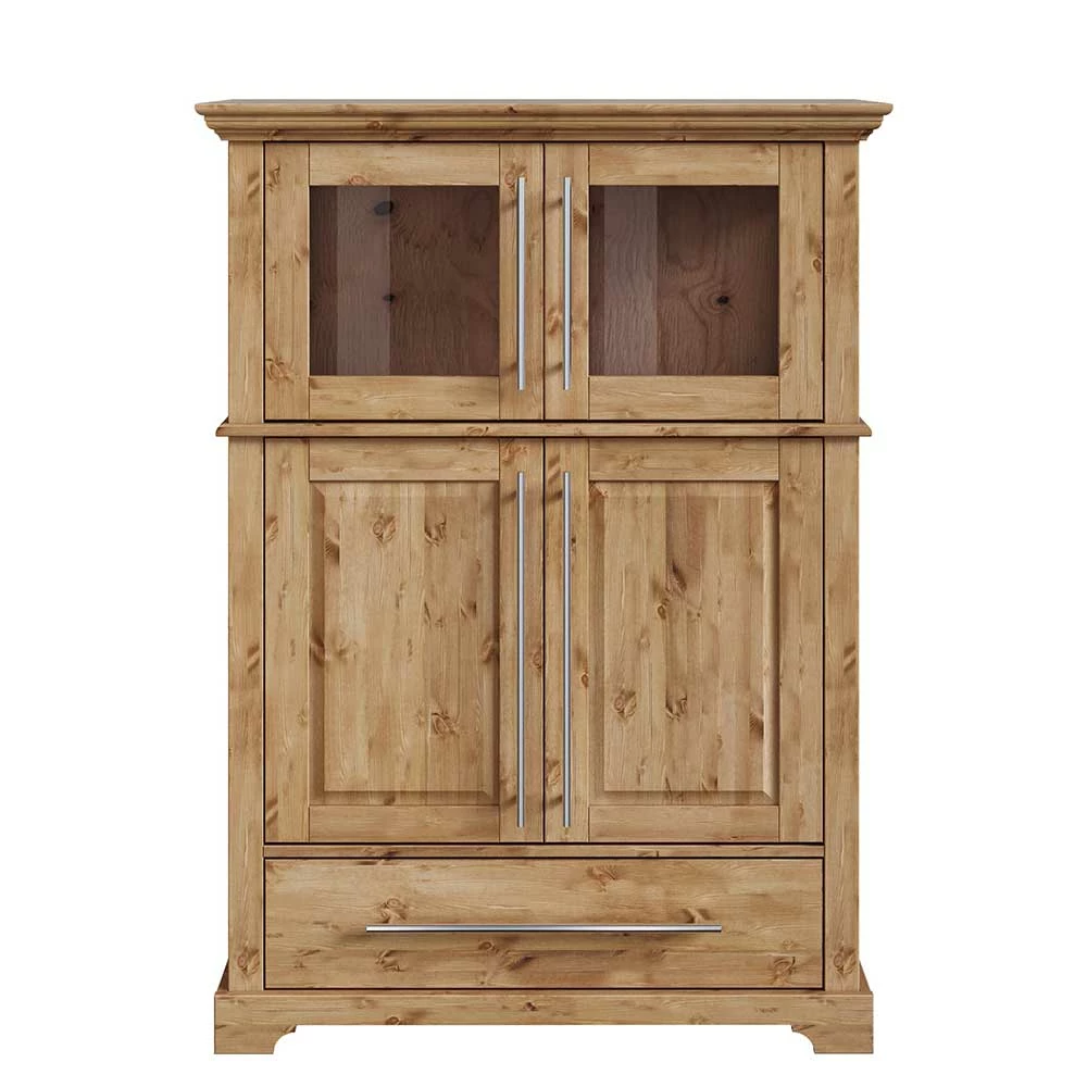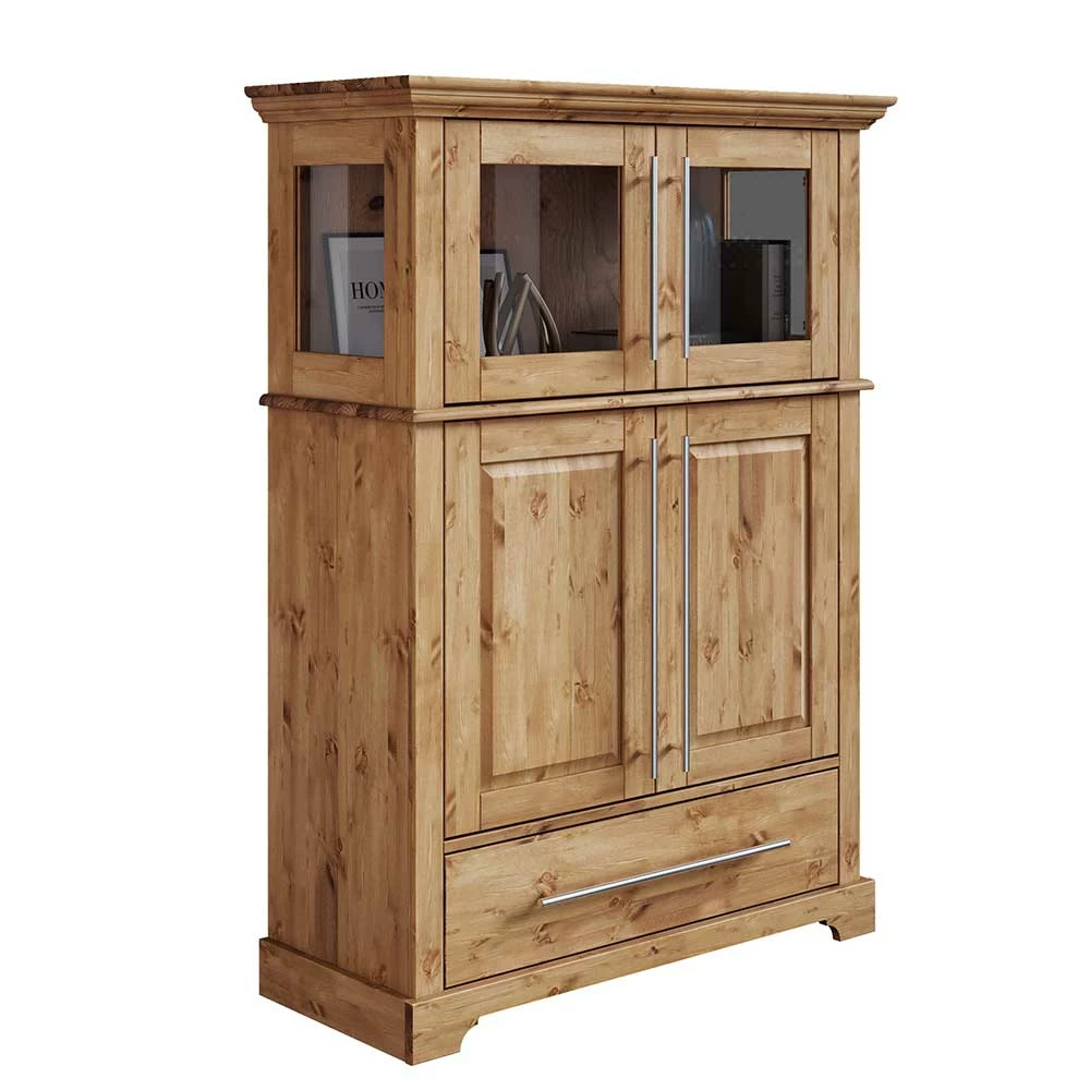 Billig 🔥 94x133x39 Modern Country Highboard Aus Kiefer Massiv – Noellisa 🤩