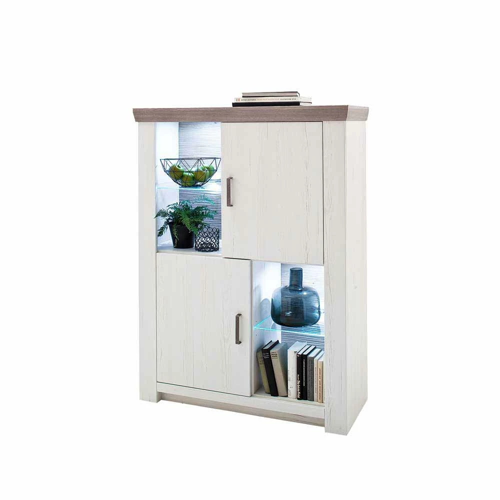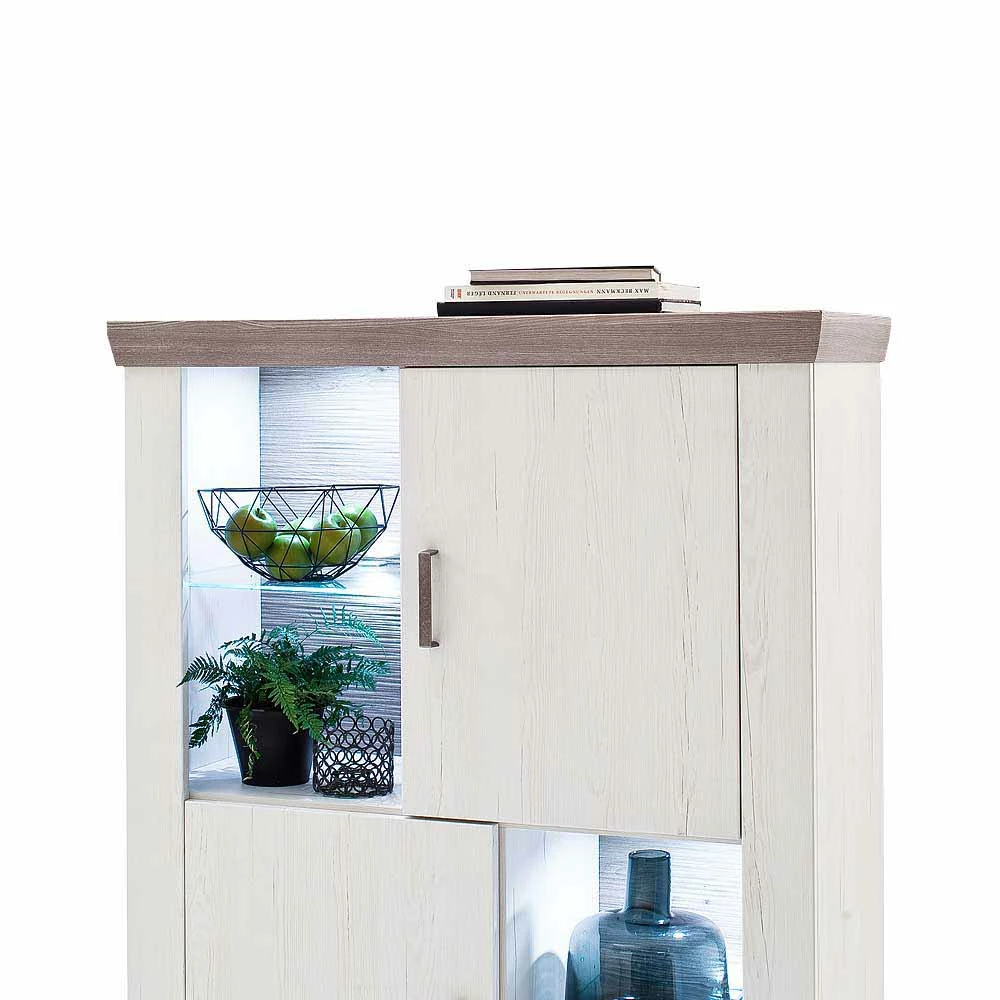 - Beeindruckende Kommode in Pinie Weiß und Eiche Grau