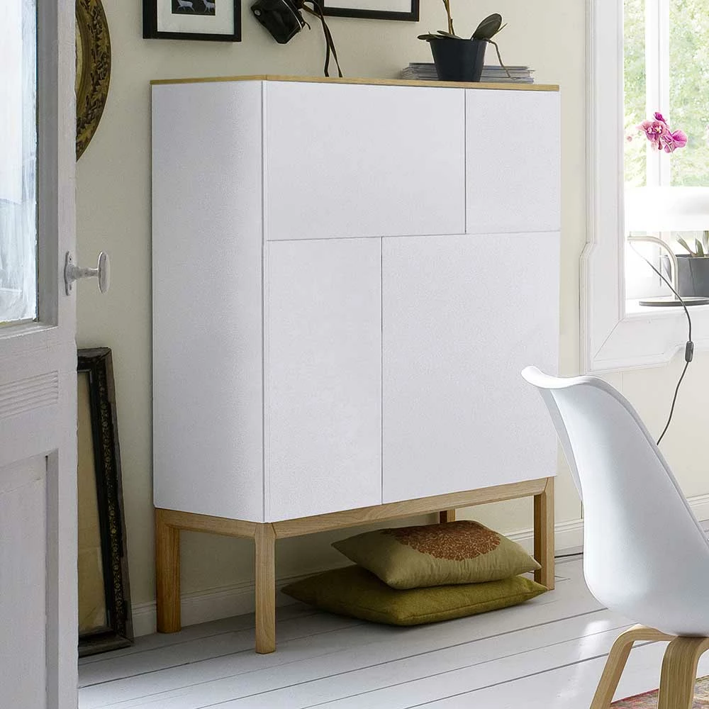 Bestes Angebot ✨ Design Highboard Dadoncas In Weiß Eiche ❤️