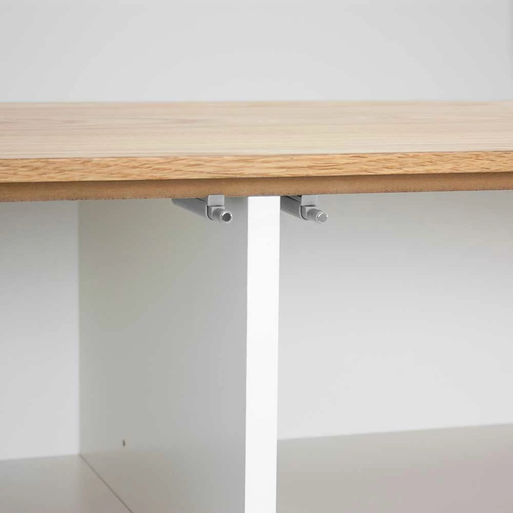 - Gefertigt aus furnierter MDF-Platte (Oberboden), Spanplatte (Korpus) und einem massiven Eichengestell