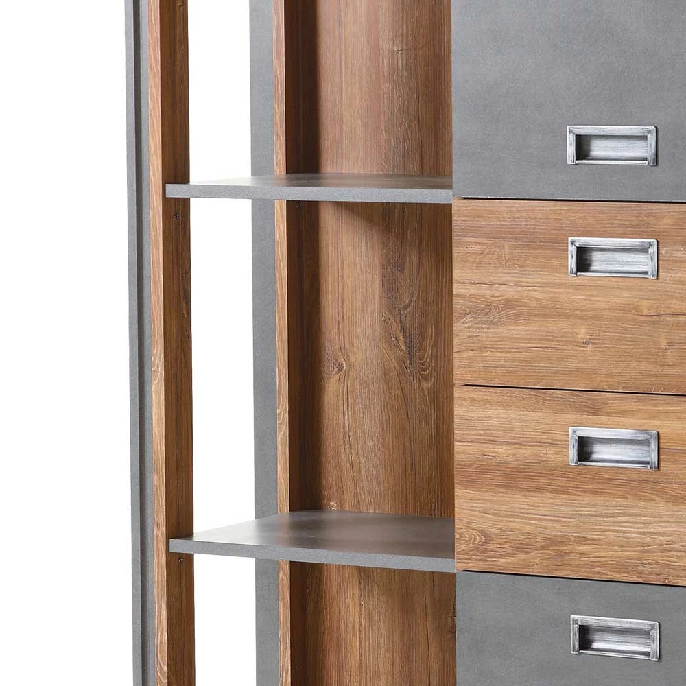 - Oberfläche komplett foliert und melaminbeschichtet in Holzoptik Eiche dunkel und Schiefergrau