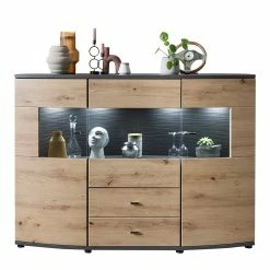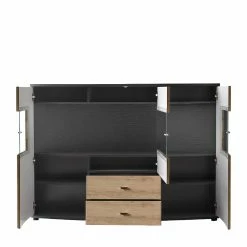 - Ansprechendes Highboard in Anthrazit und Wildeichefarben