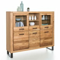 Billig 🎁 Eiche Bianco Highboard Mit Glas-Einsätzen – Crokas 🔥