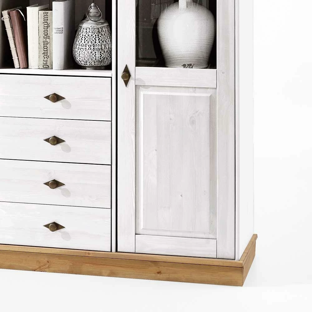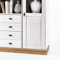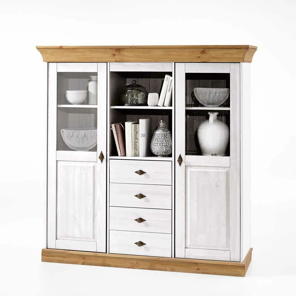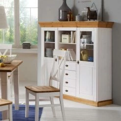 - Schönes Landhaus Highboard in Weiß und Laugenfarben