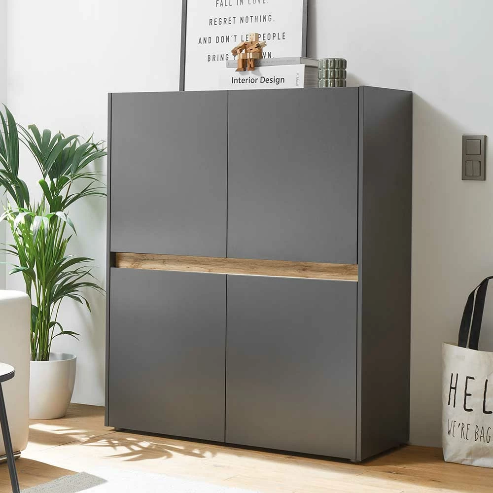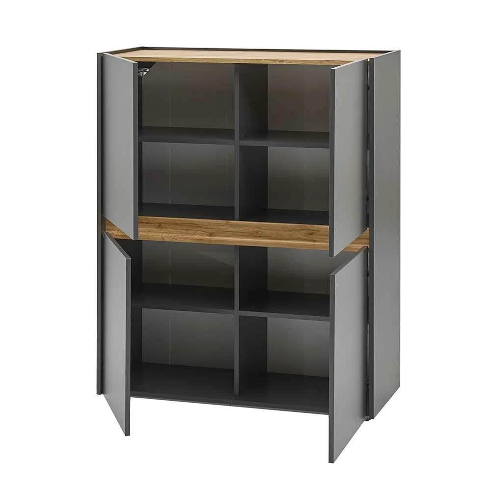 - Topaktuelles Highboard in Anthrazit und Wildeichefarben