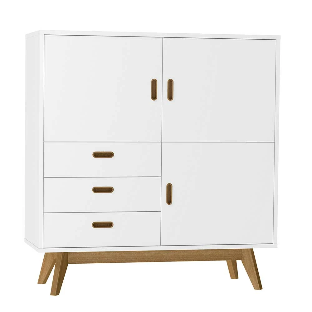 - Anmutiges Highboard in Weiß und Holz Naturfarben