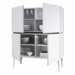 Budget 🧨 Weißer Wohnzimmer Schrank 4-türig – Omidas 👍