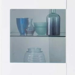 - Innenaufteilung: links und rechts: je zwei Konstruktionsböden, einer aus Glas einer aus MDF, Mitte: Zwei Einlegeböden aus MDF und ein Konstruktionsboden aus MDF
