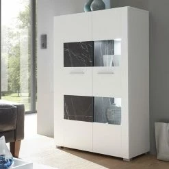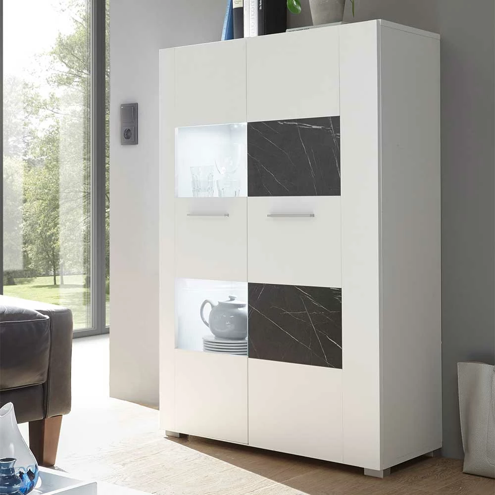 Besorgen 🔥 Wohnzimmer Highboard In Weiß & Anthrazit Steinoptik – Vaffonia ⭐